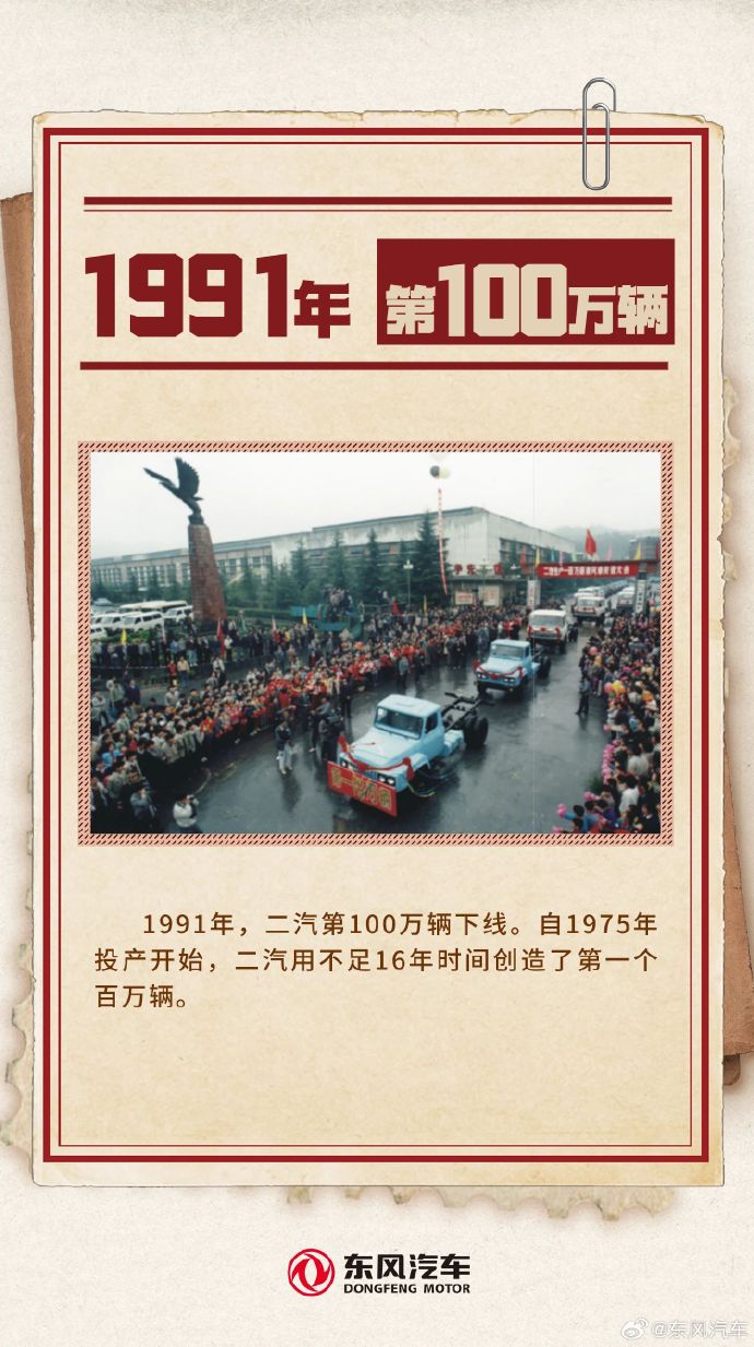 1991 年,二汽第 100 万辆下线